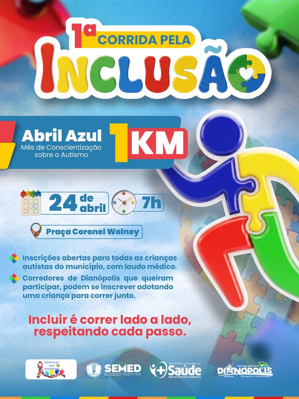 A 1ª Corrida Inclusiva será realizada na cidade de Dianópolis–TO, com o objetivo de promover inclusão, socialização e valorização das crianças atípicas por meio do esporte.